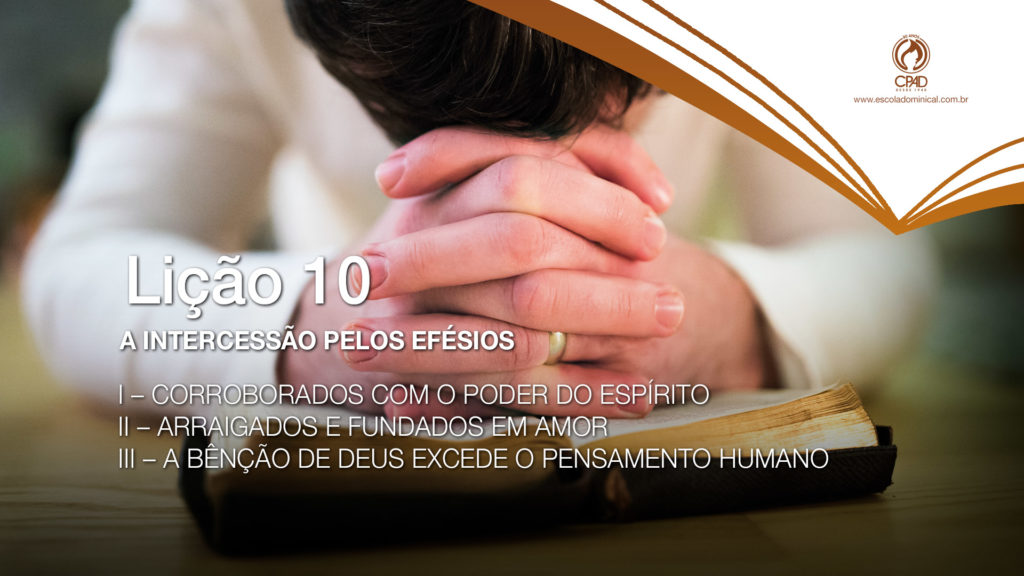 A lição parte de um pressuposto de que temos o dever de interceder uns pelos outros em amor. Isso fica claro à luz de Efésios 3.14-21. Não podemos perder de vista, porém, que o propósito da intercessão apostólica na carta leva em conta o crescimento espiritual do crente. Nesse aspecto, o primeiro tópico faz uma reflexão acerca dos propósitos da oração do apóstolo Paulo no poder do Espírito. Nesse caso, você precisa deixar claro que o poder e a presença de Cristo capacitam os salvos a prosseguirem vitoriosos na gloriosa jornada cristã. Há uma corroboração do crente que intercede com o poder do Espírito.